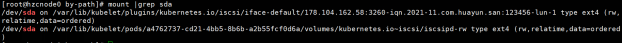 之后可以看到远程的卷被成功的挂载到node上,被容器所使用