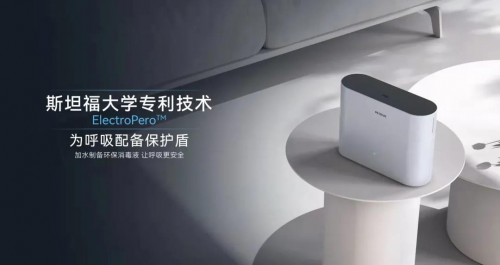 配盾空气消毒机采用独家技术专利——斯坦福ElectroPero™专利技术,该技术利用电化学氧化还原法,直接使用空气和水就能够实时制备安全有效的过氧化氢,有效解决了现有工业生产过氧化氢技术需要能量密集以及繁琐的蒽醌过程。过氧化氢为国家指定的新冠消毒剂之一。