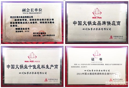 2021年被评为“四川省火锅协会副会长单位”、“中国火锅业品牌供应商”、“中国火锅业十佳底料生产商”、“2021中国火锅底料调料供应商TOP10”等荣誉。