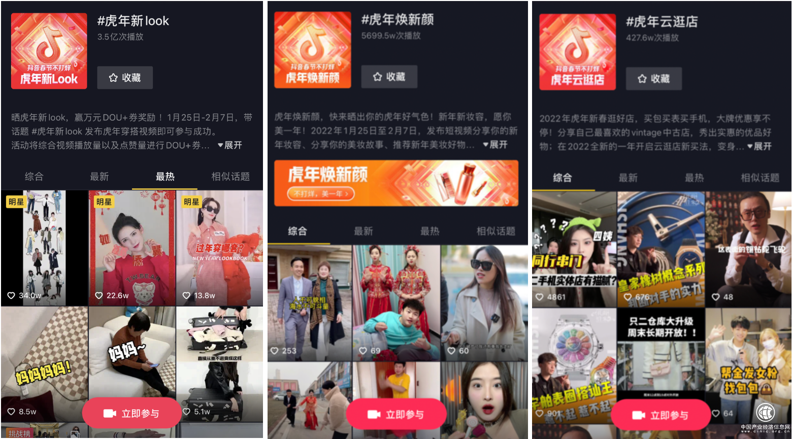 其中,聚焦穿搭、美妆、vintage中古好物等“美颜经济”的短视频,均迎来一波关注热潮。其中,#虎年新look 话题播放量超3.2亿次,吸引舒畅、田曦薇、张予曦等明星的热情参与;而#虎年焕新颜 与#虎年云逛店 也分别加速了美妆好物与二手奢侈品的带货能力。