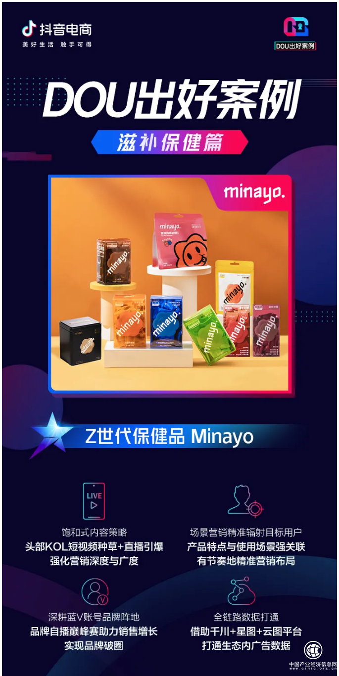 Minayo,致力于发现年轻一代国民营养需求,创造更好吃、更有趣、更有效的新一代营养产品。2021年以来,Minayo和抖音电商的合作模式可以分为几个部分,即:单品“全聚焦”,场景“全加热”,链路“全覆盖”。