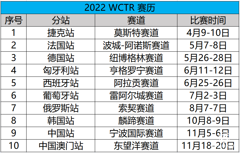 (2022赛季WTCR房车世界杯赛历)