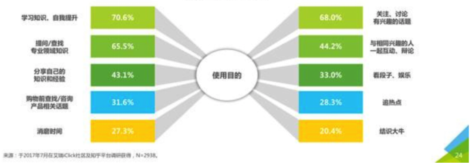 告知人群多,社区内容质量高并以文字内容为主,在"知识营销"方面有大量探索