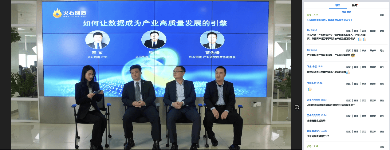 在现场答疑环节,火石创造CTO 程东、数据中心负责人项曙、产业研究院常务副院长苗先锋分别就数据来源的真实性、权威性,产业标签的科学性、准确性,数据安全保障、AI如何与数据治理融合等大家关切的问题做了互动解答(殷莉)。