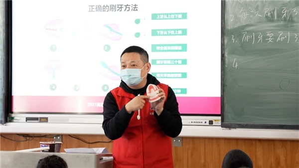 (薇美姿联合创始人余立涛给学生开展口腔健康科普课堂)