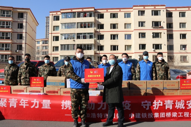在新冠确诊病例持续增加的情况下,中建铁投集团桥梁工程分公司主动对接呼和浩特市团委,了解当前抗疫紧缺物资,连夜紧急筹备、调动物资。