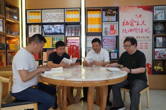 图为绍兴市上虞区烟草专卖局工作人员在党员零售客户处开展共学活动。