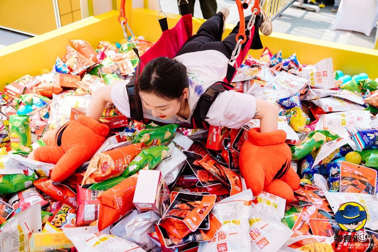 除了福利阵容强大之外,现场的游戏装置也给现场参与活动的人群带来了意想不到的欢乐与惊喜。真人抓零食机、零食圈圈乐、零食一大勺的互动趣意满满,现场俨然成为了零食很忙消费者的零食狂欢乐园。