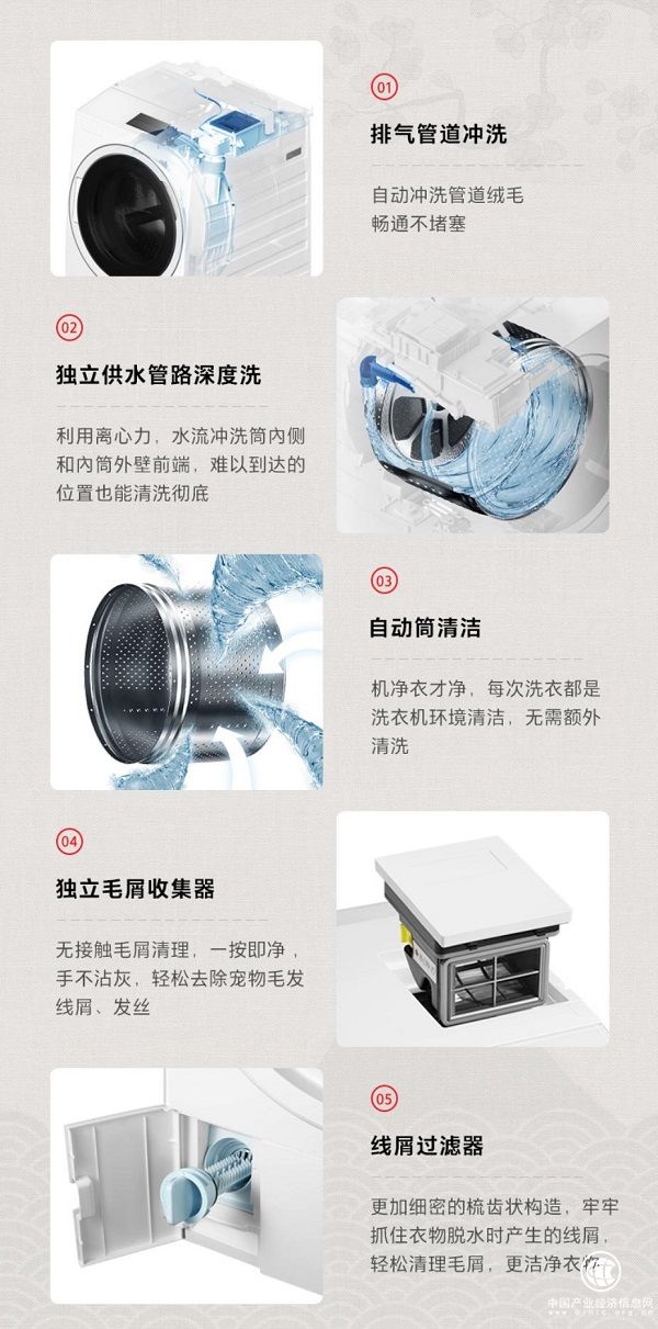 不仅仅是以上的卖点,针对洗烘一体机排气管、排水管容易被衣物毛屑堵塞的问题,东芝X9洗烘一体机更是带来了独家的五维防毛屑系统。在该机的排气管、排水管等处,均加入了独立的冲洗或者线屑过滤器。同时,东芝X9洗烘一体机支持滚筒自清洁、供水管路设立有独立的冲洗功能,配合上独立的线屑收集器,五维防毛屑系统长时间保护机器内部的干净整洁。
