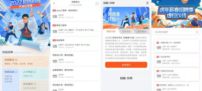 ·自如:自如借助Moka招聘搭建了极具青春活力的校招官网官微,将校招职位、校招流程、校招行程、校招红人榜、校招问答等内容囊括其中,清晰直观地展示了雇主品牌形象,不仅有效地减少了HR的沟通成本,还能增强候选人的投递意愿;在线下,自如还不断推进校企合作、开拓目标院校资源、同时结合线下针对大学生群体的品牌推广活动,扩大品牌覆盖范围。