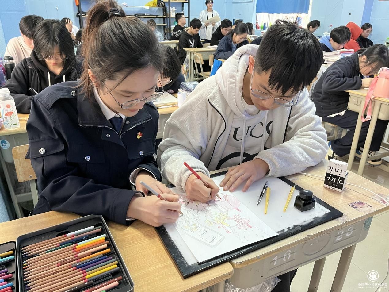 图为安吉县烟草专卖局专卖人员与上墅私立高中的学生一起绘制电子烟危害宣传漫画。庞家琪摄