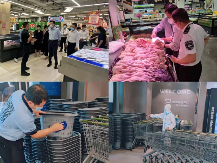 3月14日上午,工信局、市监局负责人协同龙岗区区长、副区长到店检查门店疫情防控情况及生活物资保障情况。现场询问并查看了蔬果、猪肉、大米、粮油供应情况及订货量;西乡所的所长和市监局队长也在宝安大仟里店现场询问了民生保障问题。店内物资充足、运行有序的保供工作受到认可。