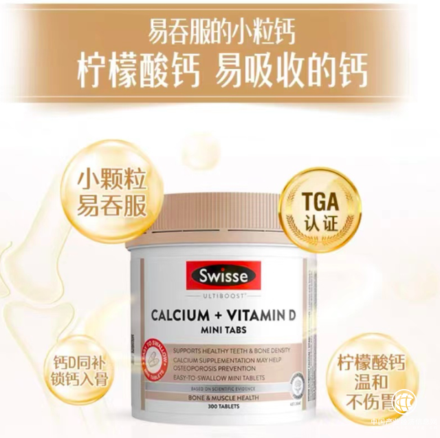 为促进钙吸收,Swisse斯维诗柠檬酸钙还在配方中添加了维生素D,通过维生素D来帮助钙磷在小肠的吸收,以调节钙、磷代谢,维持血液和组织液中钙、磷的适宜水平,并且还可以促进钙沉积到骨骼中,有利于新生骨和软骨的钙化。