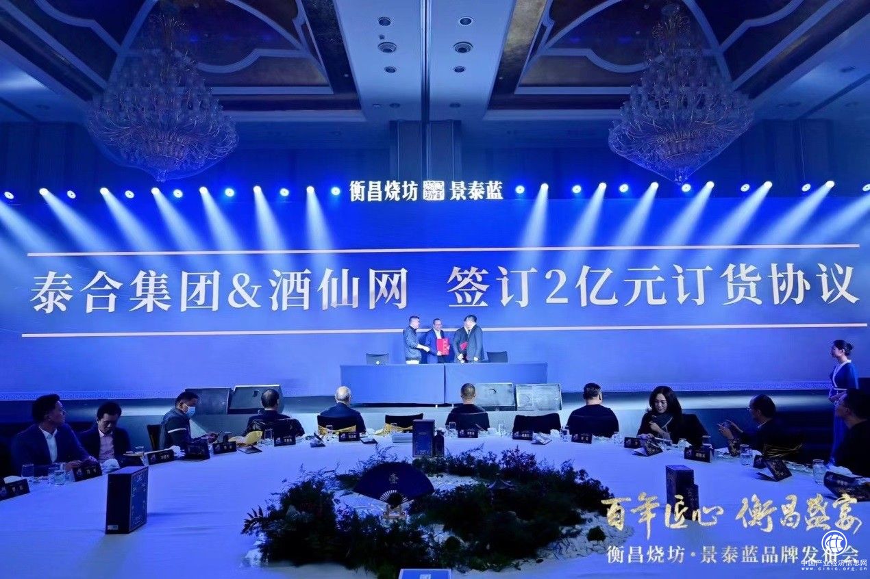 新年伊始,酱酒新贵衡昌烧坊•景泰蓝系列酒在 2021 年 12 月 31 日正式上市。当日,衡昌烧坊•景泰蓝品牌发布会在成都环球中心举行。发布会上,泰合集团旗下企业沛华酒业总经理范会涛与酒仙网董事长郝鸿峰现场签订 2 亿元的订货协议。