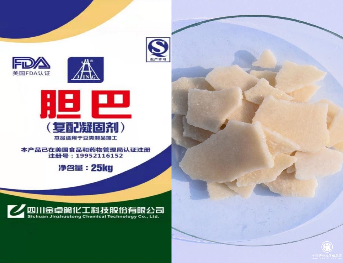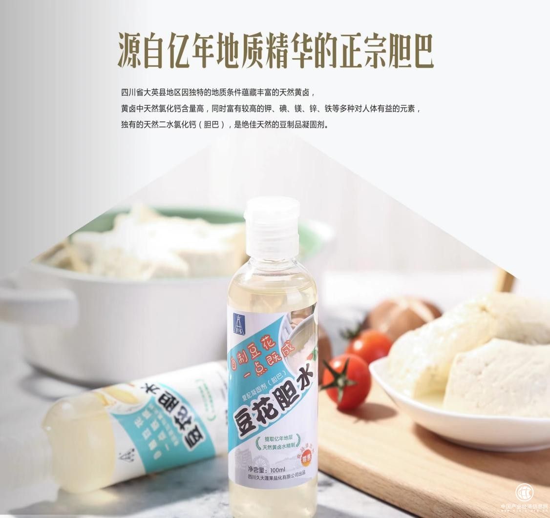 四川金卓筒化工科技股份有限公司采用德、美、日、加拿大等国先进技术及全自动控制加工设备,将制盐母液除去钡、镁等有害杂质,经过净化、沉清、吹出、蒸馏、蒸发、浓缩等七道工序精制而成的食用胆巴,该产品于2021年8月12日已通过美国食品药品局FDA认证(认证号:19952116152 );食用胆巴易溶,易吸收,天然富含钙、钾、铁、锌、钠、碘等40多种微量元素。点制的豆腐、豆花,质地细腻洁白、豆香浓郁、入口弹滑、口感纯正、回甜可口、天然养生是食用补钙补充微量元素的最佳方式,是点制上佳品质豆腐的独家秘诀!