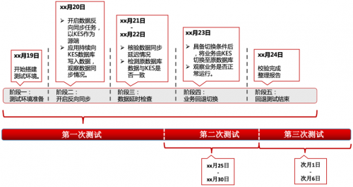 基于上述柔性迁移方案,金仓团队于2021年xx月12日开始执行系统迁移的实施工作。