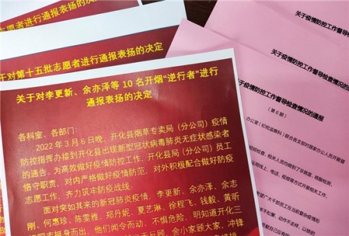 “昨天发现的消杀流程不规范问题,我们现场进行整改了,并且对消杀的时间要求和台账记录都进一步完善了。”“虽然早上5点多就要到核酸检测点去维持秩序,但为了开化的疫情早日结束,这都是我们应该做的。每次单位的表扬通报也让我心里感受很温暖。”每日推送的检查通报和表扬通报,近期在开化县烟草专卖局钉钉群中引起了刷屏点赞。