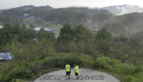 镜头拉远,彭亮方兴眺望建设中的高速公路,彭亮向方兴讲述自己放弃更好的发展机会,投身家乡基础设施建设的选择,初心之路,已然在心。