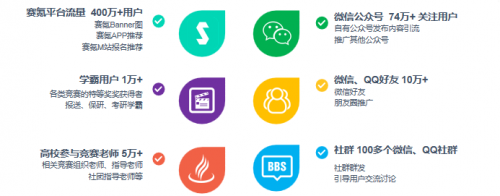 据了解,“赛氪”平台作为很多大型赛事机构的合作伙伴,它是一个非常成熟的大学生全品类的赛事服务平台,目前已经与腾讯、华为、京东、阿里巴巴等国内知名企业达成深度合作。腾讯、华为、京东、阿里巴巴等企业借助“赛氪”的平台优势,进行赛事开展、宣传以及报名渠道的补充,同时“赛氪”也会为各大行业巨头举办的赛事提供服务保障。