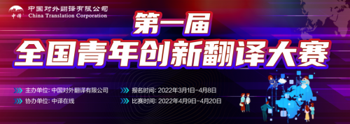 此外,由中宣部下属中国出版集团公司成员单位中国对外翻译有限公司主办,中译在线协办的第一届“全国青年创新翻译大赛”也将于2022年4月8日于“赛氪”平台上完成报名。此项赛事以唤起当代青年对英语学习重要性的认识,增加大学生就业优势,推动国际化、复合型人才发展为目的,同时,为促进我国翻译教育事业的发展和专业人员翻译水平的提高,调动广大翻译爱好者尤其是高等院校在校大学生提升翻译及语言技能应用的积极性而举办。此项比赛除大学生外,其他社会人员也可以进行报名参与,大赛的冠军可以直接进入主办单位——中国对外翻译有限公司进行实习。