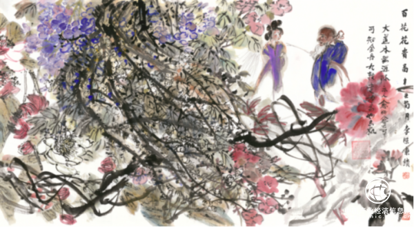 在《百花花贵图》系列艺术品中,隋广义先生和李照东先生将气势、虚实完全诗化,做到画外有画,意蕴悠长,使观画人的情操受到陶冶。一位收藏《百花花贵图》系列艺术品的企业家直言:“《百花花贵图》中蕴含的传统文化内涵、正能量以及旷达不羁的画面风格,常使人心气平和。” 在当下市场经济大潮影响下,名利的追求推动着相当多人难免浮躁的心态,而《百花花贵图》系列艺术品能为人们赋能助益,这也许就是为什么该系列艺术品能受到市场热烈欢迎的原因之一。