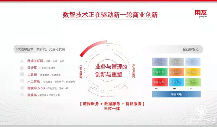 基于对企业数据的的理解,用友通过多种能力帮助企业高效执行业务,包括分析、决策等,我们认为数据服务是企业数字化的终极目标。