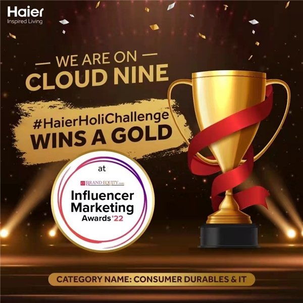 2022年3月23日,印度首屈一指的商业报刊《经济时报》公布了品牌资产影响者营销奖名单,海尔印度2021年洒红节用户交互活动#HaierHoliChallenge荣获营销影响力金奖。