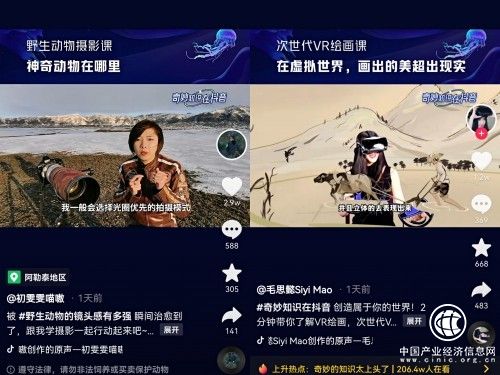 近日,抖音发起“奇妙知识在抖音”活动,携手莫言、柳夜熙、江南、徐则臣、A-SOUL 等创作者,共同打造知识对谈内容。活动期间,抖音还推出“学点兴趣课”“高校公开课”等版块。用户在抖音搜索“奇妙知识”即可进入活动页面,学习感兴趣的知识内容。截至目前,#奇妙知识在抖音 话题播放量超2.8亿。