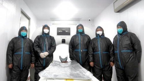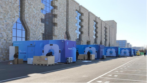东软医疗园区内大批准备发往全国各地的方舱CT