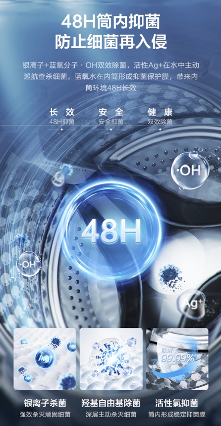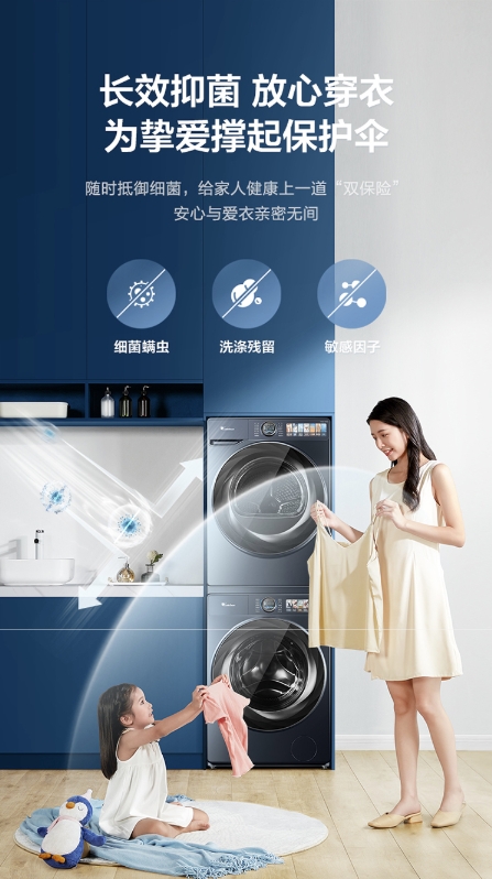 在完成衣物洁净清洗后,三重杀菌也是小天鹅本色系列洗烘套装的优势所在。在洗涤过程中,蓝氧特渍净技术可以快速分解有机微生物,实现深层主动杀灭细菌,配合备受好评的银离子杀菌技术,不仅能在内筒形成48H长效抑菌保护膜,同时还可以达到99.99%杀菌率。在干衣过程中,UV紫外线360°动态反射穿透衣物纤维,全面射杀藏匿在深处细菌。三重除菌让孩子和家人时刻享受健康衣物带来的满满幸福感。