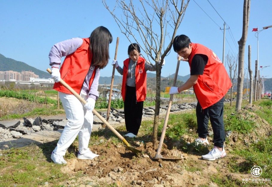 (图为三门县烟草专卖局“香溢”青年志愿者正在种植樱花树 徐之恺摄)