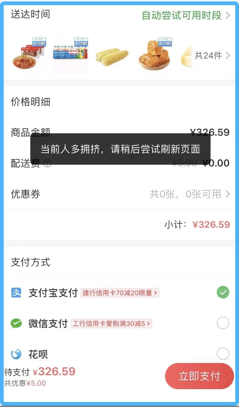 “当前人多拥挤,请稍后尝试刷新页面。”
