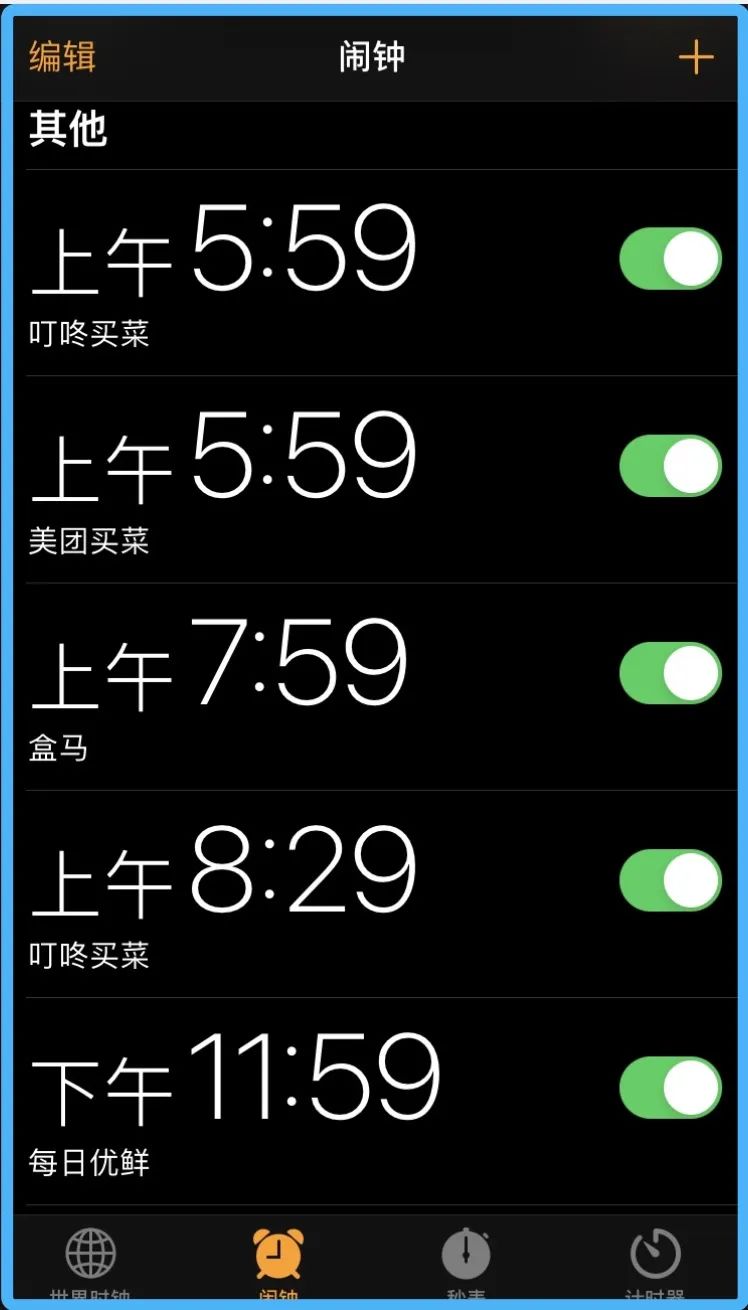 通常情况下,高静会在前一天夜里浏览各大生鲜App,加购好要买的商品,然后定上多个“抢菜”闹钟,以防错过。