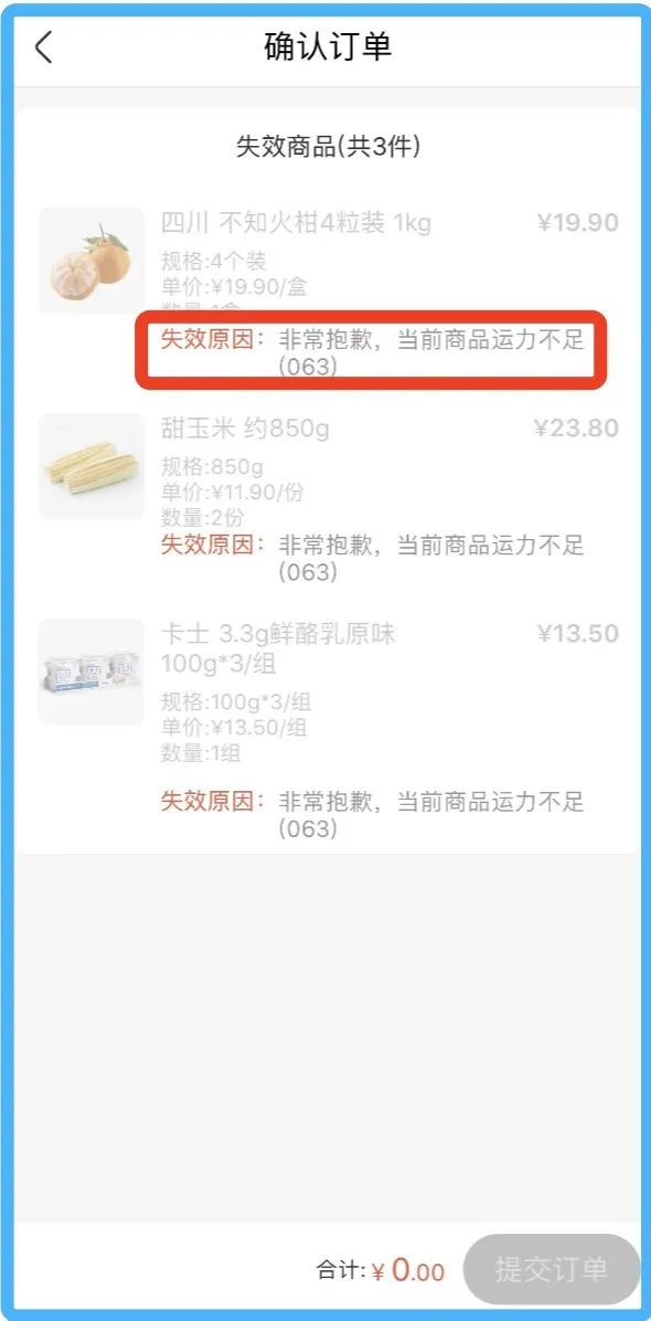 由于购买人数较多、需求量较大,在结算过程中,系统每卡顿一次,刷新后商品总会少几样。本着“宁可买多,不能遗漏”的原则,高静的购物车里总会加购大几百块的商品,这样“买一次就能吃很久”,实际情况却是,她几乎没有一次能将东西买齐。