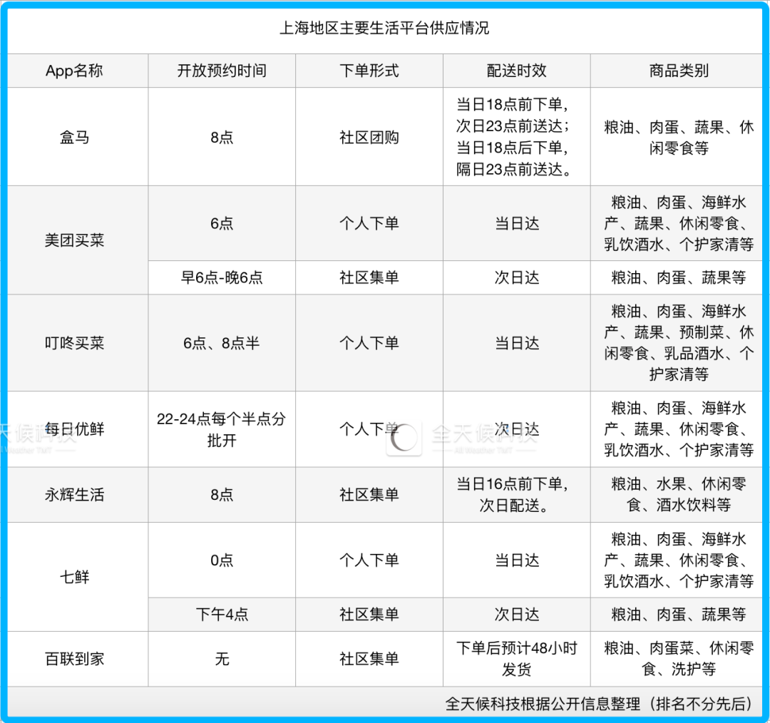 与之相反的是,包括盒马、叮咚买菜、美团买菜、每日优鲜、本来生活网等在内的多家生鲜电商平台几乎都向全天候科技表示,目前正在全力保供,已经加大了进货量,库存充足、物价稳定,能满足居民基本生活需求。