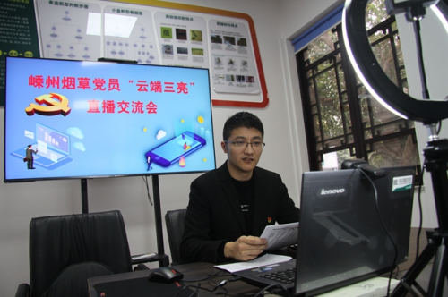 图为:嵊州市烟草专卖局青年党员通过直播方式上党课