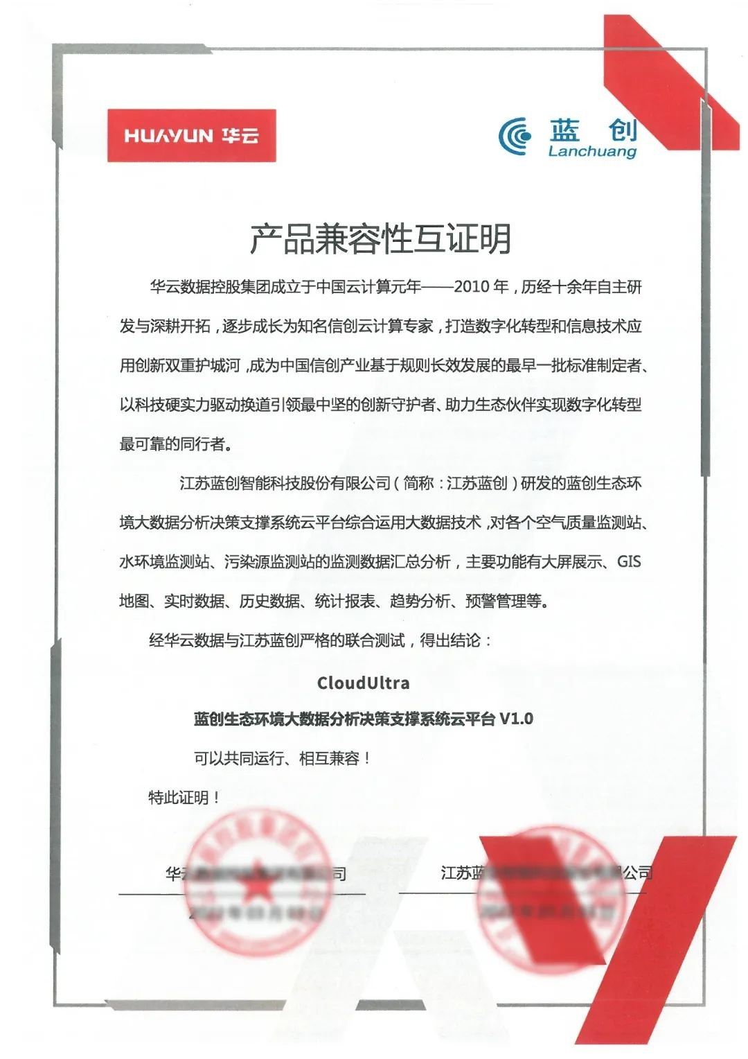 为持续给环境保障工作提供强有力的智能化支撑,近日,华云数据(微信号:chinac_com)与江苏蓝创智能科技股份有限公司(以下简称“蓝创”)完成产品兼容互认证。本次兼容性互认证经华云数据与蓝创联合测试得出:华云数据CloudUltra与蓝创生态环境大数据分析决策支撑系统云平台相互兼容,功能稳定运行,产品体验良好。