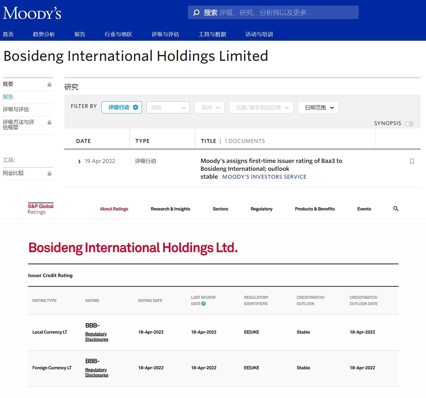 (2022年4月19日 – 香港) – 中国最大的羽绒服企业波司登国际控股有限公司(「波司登」或 「公司」;股份编号:3998,连同其附属公司「集团」)欣然宣布,两大国际权威评级机构穆迪投资者服务公司(「穆迪」)和标普全球评级(「标普」)对公司分别授予「Baa3(展望稳定)」及「BBB-(展望稳定)」长期信用评级。获得穆迪和标普的「双投资级」,使得公司不仅成为了亚太区品牌服装行业中首家获得投资级的公司,同时也是中国品牌服装行业目前为止最好的国际信用评级结果,彰显资本市场对波司登可持续发展的充分肯定。