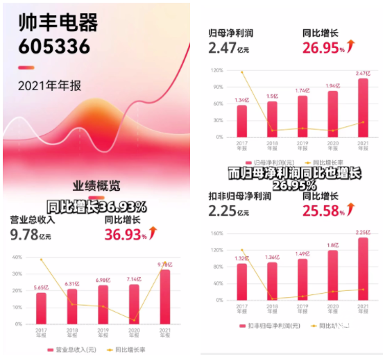 嵊州作为厨具之都 是全国最大的集成灶生产基地 为何小县城能打造全国瞩目的集成灶产业? 财经类达人【直男财经】 解密大国品牌帅丰集成灶 帅丰2021年的年报新鲜出炉 公司营业收入为9.78亿 较去年同期增长36.93% 净利润较去年同比增长26.95% 实现营收和净利润双增长