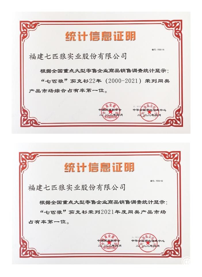 会议发布了2021年度中国消费品市场销售领先品牌、连续20年及以上中国消费品市场销售领先品牌,七匹狼茄克获得“2021年度同类产品市场占有率第一位”和“22年(2000-2021)荣列同类产品市场综合占有率第一位”双料殊荣。奖项背后,是七匹狼对男装,特别是茄克细分市场的深刻理解,以及数字化升级的成功实践。