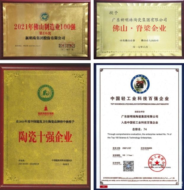 集团多次被评为佛山制造业百强、中国轻工业科技百强企业、陶瓷十强企业,荣膺“佛山•脊梁企业”等称号。