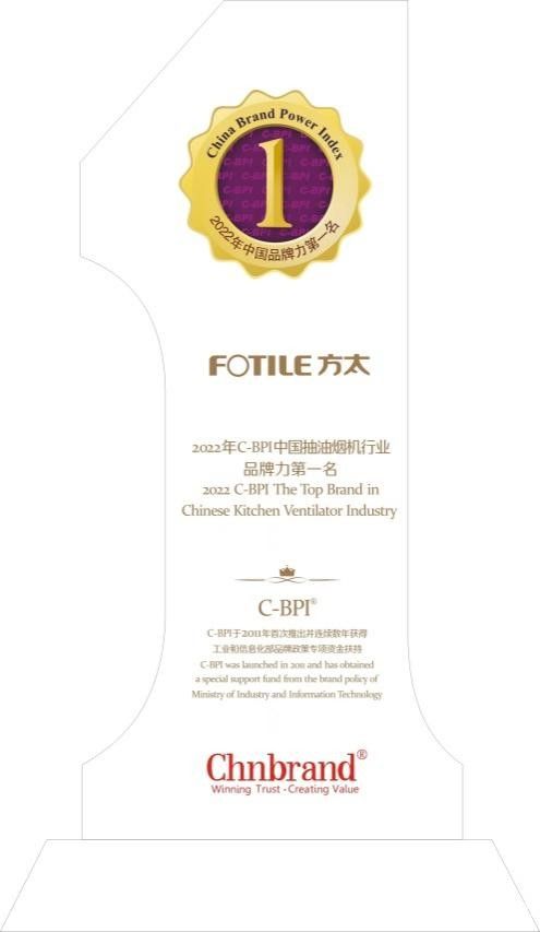 4月23日,品牌评级专业机构Chnbrand发布2022中国品牌力指数(C-BPI)品牌排名和分析报告,方太凭借全隐升降吸油烟机和制冷油烟机,以556.1分卫冕C-BPI抽油烟机行业品牌排行榜榜首,荣获“行业第一品牌”殊荣。