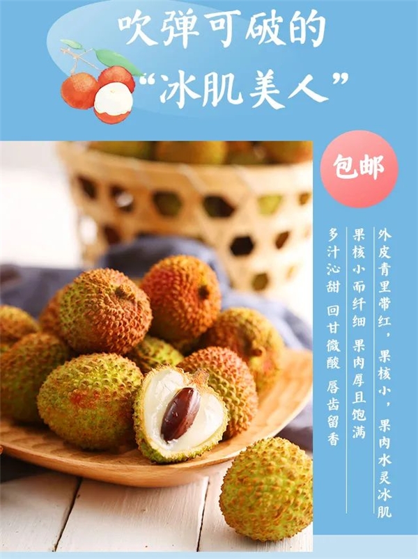 妃子笑荔枝的赏味期短,且不好保存,收到后可放冰箱冷藏,冷藏过后的妃子笑更加冰爽可口。闷热的夏天来一颗冰镇荔枝,简直是夏天一大乐事。这滋味可只能享受十几天时间,必须吃个过瘾。