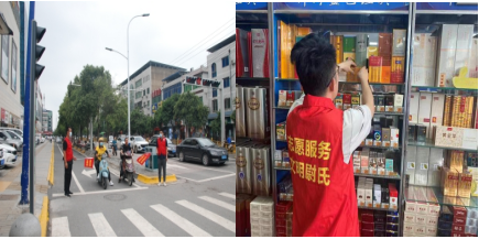活动的最后环节,在领导干部的带领下,青年职工们自行组队开展社会实践活动,在街道各个交通路口进行交通疏导、提供便民服务等志愿服务,青年职工在服务周边、回馈社会中展现烟草青年服务社会、奉献社会的精神风貌。他们既是奉献者又是受益者,在服务他人给别人带来方便的同时,也让自己收获了感动和快乐。