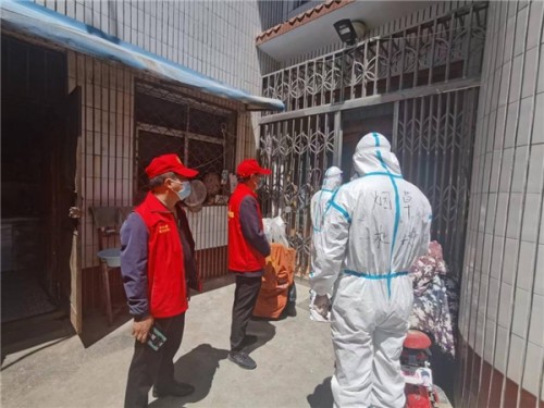在新民路核酸采样点,遍布着“金叶红”党员先锋队队员的身影,他们今天有一个共同的信念,就是助力核酸采样工作顺利完成。他们各司其职、各尽其责,有的在出入口引导等候检测的居民,有的在登记区协助群众录入信息,提醒群众注意事项,有的帮助行动不便的群众,并维护采样现场秩序。在附近居民们陆续来到采样点后,“红马甲”们手持小喇叭提醒大家戴好口罩,按照一米线距离有序排队,提前打开健康码和身份证,确保现场采样工作组织有序、安全,人员不聚集、不扎堆。
