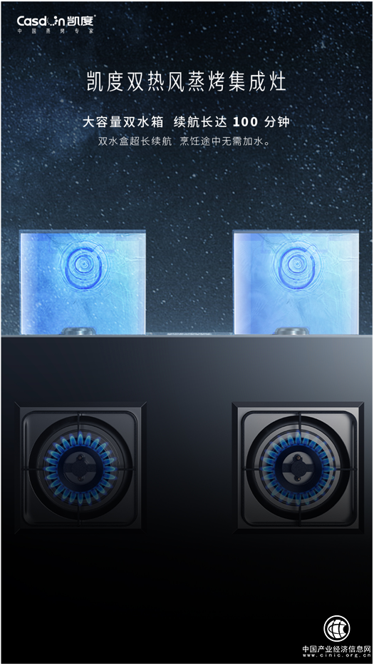 如今,凯度再次将双热风技术移植到集成灶上,成为双热风蒸烤集成灶的开创者,既为集成灶行业的技术变革、产品创新注入了新动能,进一步带动蒸烤类集成灶的崛起,也借由双热风技术升温更快、温场更匀、控温更准、真正免预热等一系列优势为无数集成灶用户缔造出效率更高、使用更便捷、烹饪0失败的完美蒸烤体验。