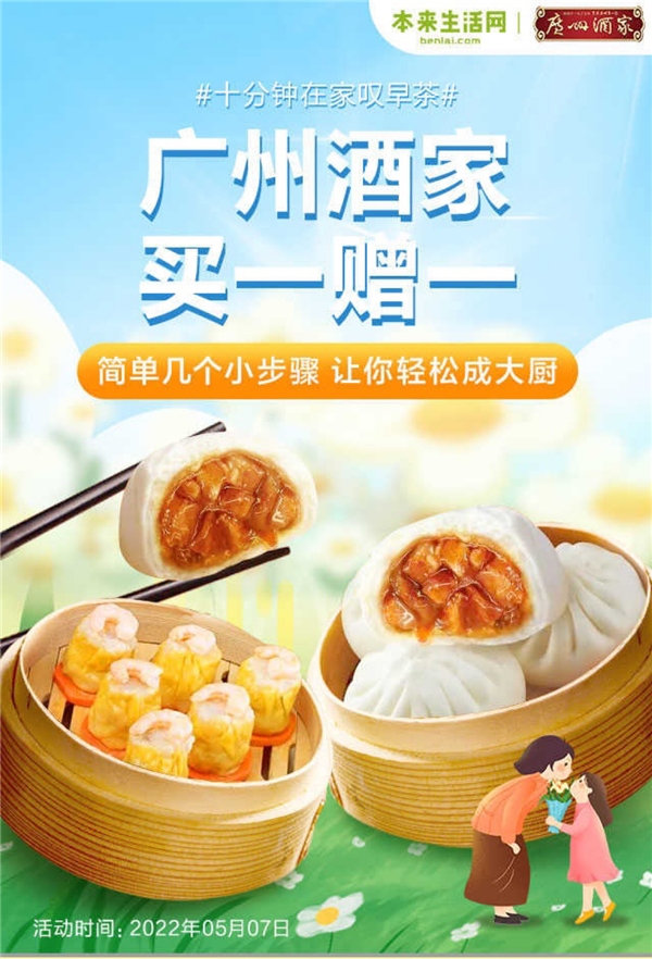 别担心!本来生活为大家准备了花样早点。广州酒家超多爆款买一送一,让你在家轻松“叹早茶”。