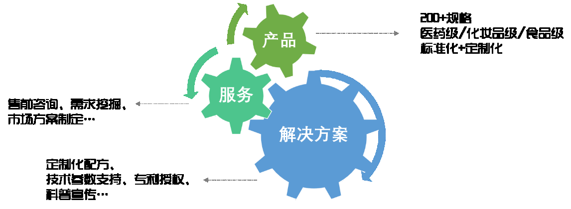 据长期关注华熙生物的业内人士表示,该公司在联合客户开发新品时,优势在于其能帮助更好地规避比如市场准入、概念性添加、产品体感不强、产品安全性等市场痛点。此外,传统食品企业在产品口味上拥有丰富研究经验,医药和保健食品企业则在产品功效性研究方面经验深厚。对此,华熙生物作为解决方案供应商也努力做到尊重客户自己的优势,在标准化和定制化方面力求做到平衡,外加贯穿整个售前/售后周期的服务能力,这让许多大厂更愿意与其合作,并不断形成一个依托科技专利授权打造口服玻尿酸的行业赋能生态。