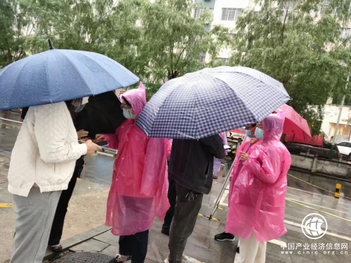 7点整,核酸检测工作准时启动。参加核酸检测的居民在志愿者的引导下测量体温,出示健康码、行程码和登记码,自觉保持一米间隔距离有序排队。志愿者们不惧风雨,按照各自分工,服从大局、听从指挥,做好登记、维持秩序,及时提醒群众做好个人防护及雨天路滑注意安全。发现没带雨伞的居民,志愿者还把自己的雨伞借给前来做核酸检测的居民,不让群众淋湿衣服,遭受风寒。