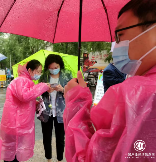 一位50多岁的居民拿着手机询问身边的志愿者田甜:“我换的新手机,找半天也找不到我的登记码了,我知道拿身份证也能检测,但我还是想找到我的登记码以后方便,你能帮我在手机上找找吗?”“好的,阿姨,您把身份证给我,我在您手机上重新输入查找一下。”其实田甜完全明白,阿姨拿着身份证直接去检测更方便,手机上还得输入很多信息还不确定能否顺利找回登记码,但她什么也没说,站在雨中直接接过了阿姨的手机和身份证输了起来。